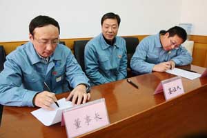會上還宣讀了《關(guān)于表彰2017年度HSE先進(jìn)單位和個人的決定》,公司董事長代表公司與重堿車間、煅燒車間等5家部門代表簽訂了2018年HSE責(zé)任書。