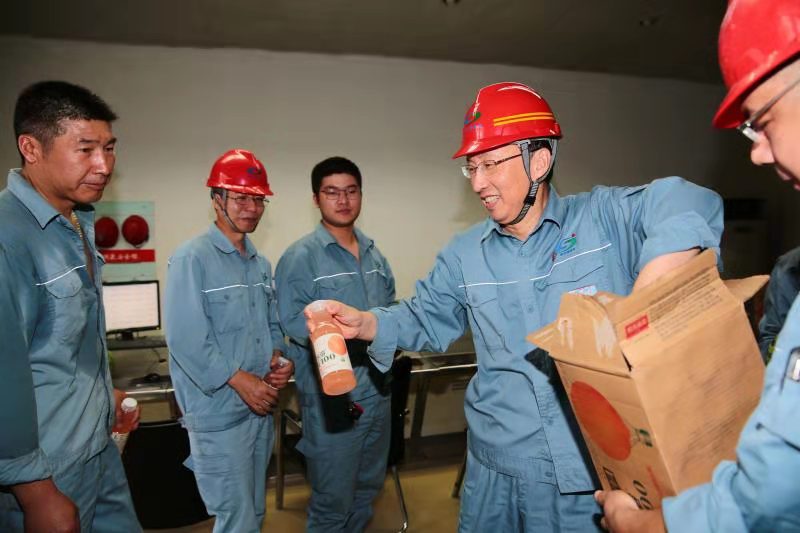 公司領導每到一處,親手將一瓶瓶清涼飲品送到大家手中,與現場人員一一握手,感謝大家在炎炎夏日仍不辭辛勞、堅守崗位,為全面完成各項目標任務所作出的奉獻,并叮囑他們在堅守崗位的同時注意安全生產,做好防暑降溫工作。他要求各單位要堅持“生命至上、安全發(fā)展”的理念,把各項安全生產防護措施落實落細,切實保障員工的身體健康,確保各項生產作業(yè)順利進行。