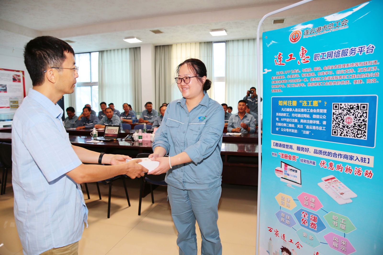 此次調(diào)研,孫月春副主席一行帶來三百余冊圖書贈予公司職工書屋,進(jìn)一步豐富了公司職工的業(yè)余文化生活,并向參加連工惠抽獎活動獲獎的我公司職工伏廣偉頒獎。連工惠運營人員針對“連工惠”平臺注冊相關(guān)事宜進(jìn)行了面對面指導(dǎo),并一一解答了現(xiàn)場參會人員提出的問題。