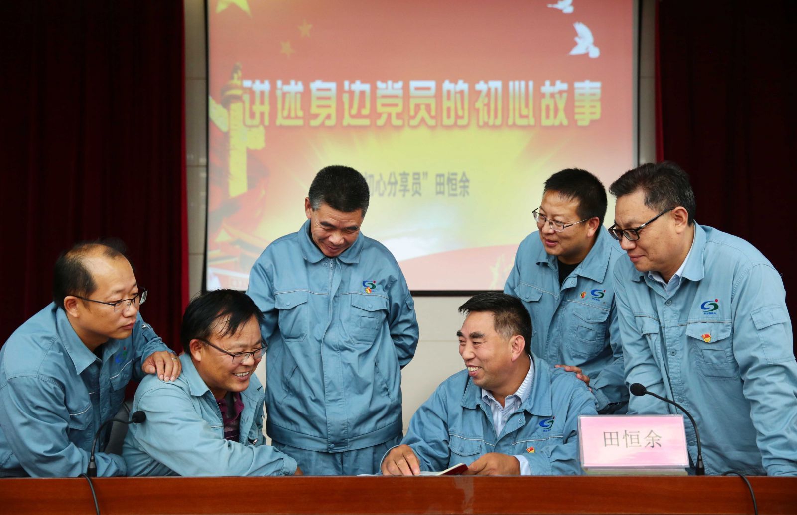 田恒余是我公司重堿車間碳化工段長,1990年7月入黨,工作32年一直堅(jiān)守在基層一線。在初心分享會上,他首先分享了他自己崇拜的優(yōu)秀黨員焦裕祿的感人事跡。隨后,用樸實(shí)無華的語言,講述了自己加入中國共產(chǎn)黨及參加工作的經(jīng)歷。無論在什么崗位上,他都始終不忘自己是個(gè)共產(chǎn)黨員,始終以黨員的標(biāo)準(zhǔn)嚴(yán)格要求自己,充分發(fā)揮黨員的先鋒模范作用。他用自己的勤奮執(zhí)著與使命擔(dān)當(dāng),從一名初級工逐步成長為高級技師、主任技師和國家級技能考評員,并先后獲得了江蘇省優(yōu)秀共產(chǎn)黨員、市勞模、江蘇省五一勞動獎(jiǎng)?wù)隆⑷珖逡粍趧营?jiǎng)?wù)路Q號,被評為江蘇省十佳文明職工、江蘇省技術(shù)能手、江蘇省首席員工、連云港市十大港城工匠,享受國務(wù)院政府特殊津貼。他說,他成績的取得離不開各級組織的培養(yǎng)和支持,作為一名共產(chǎn)黨員,今后仍要不忘初心,砥礪前行,用實(shí)際行動展現(xiàn)入黨時(shí)的錚錚誓言。
