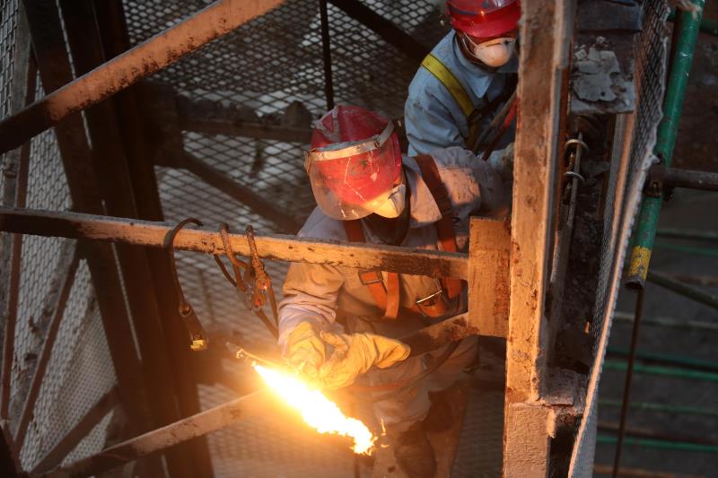 2月3日,2#石灰窯突發(fā)故障,對此,檢修車間領(lǐng)導(dǎo)帶領(lǐng)班組成員7人在做好安全以及病毒防御各項措施后,加班加點,其中黨員同志技術(shù)員朱孔慧和班長謝文東沖鋒在前,從早上八點一直工作到了夜里十點,終于將故障消除,順利實現(xiàn)了石灰窯運行。