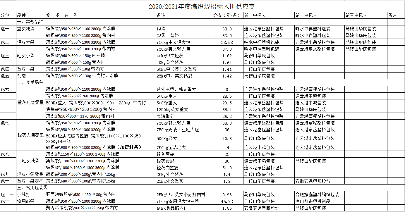 連云港堿業(yè)有限公司編織袋招標評審結果公示