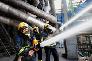 公司黨委書(shū)記、董事長(zhǎng)張衛(wèi)民,黨委副書(shū)記、總經(jīng)理李清菊,副總經(jīng)理焦旺盛參加演練并提要求。健康安全環(huán)保部消防隊(duì)、熱電車(chē)間抽調(diào)精兵強(qiáng)將參加這次突發(fā)事件應(yīng)急預(yù)案實(shí)戰(zhàn)演練。