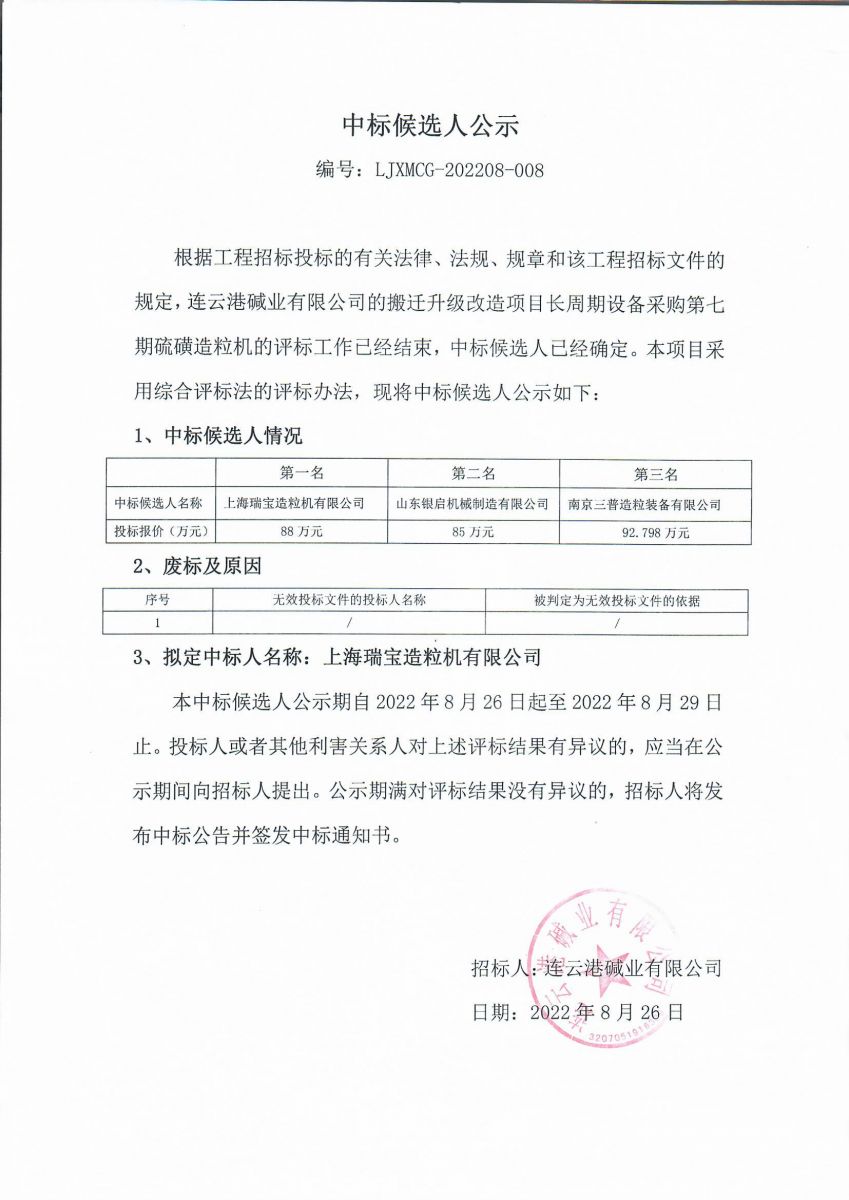 搬遷升級改造項目硫磺造粒機中標(biāo)候選人公示
