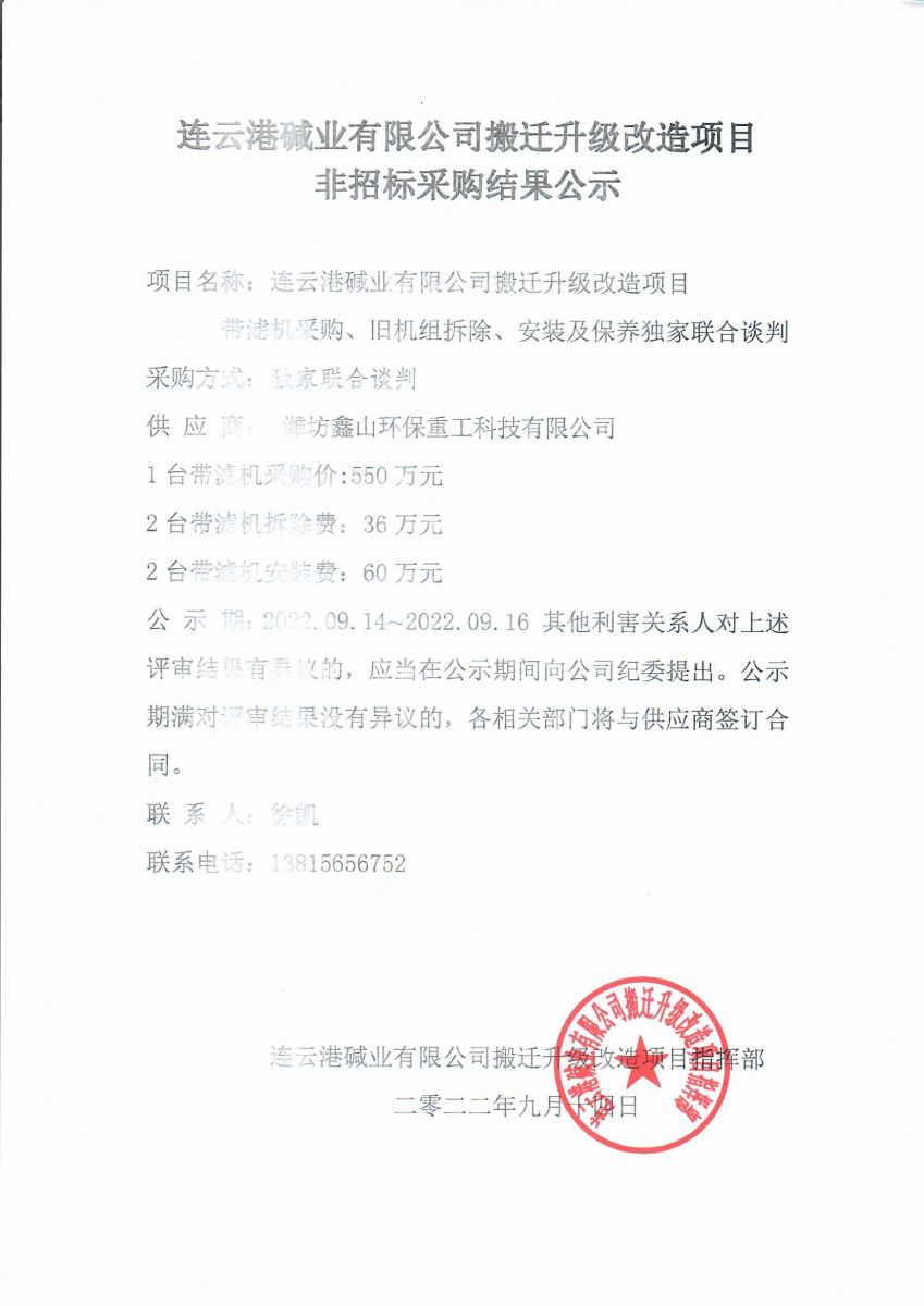 搬遷升級改造項目非招標(biāo)采購結(jié)果公示
