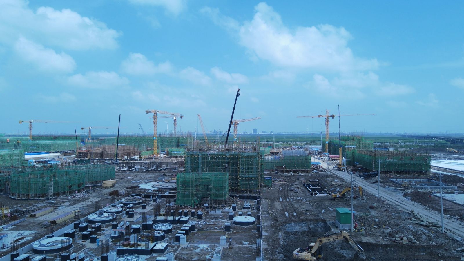 ⑸合成氨二標(biāo)段271原料煤儲(chǔ)運(yùn)破碎樓三層底板放線,#1轉(zhuǎn)運(yùn)站頂層梁板柱澆筑,#2轉(zhuǎn)運(yùn)站三層支撐架搭設(shè),鋼筋綁扎、支模,角撐、斜撐、圍檁安裝;820合成氨循環(huán)水站清凈廢水池上部結(jié)構(gòu),塔下水池墻壁支模;711煤漿制備二層腳手架搭設(shè),鋼筋綁扎,支模,安裝預(yù)埋件,初期雨水池池壁鋼筋綁扎,支模,支撐架搭設(shè),套管安裝;762壓縮機(jī)廠房上部結(jié)構(gòu)支模;761冷箱基礎(chǔ)冷箱防護(hù)墻拆模;膨脹機(jī)房上部結(jié)構(gòu)鋼筋綁扎;712氣化框架立柱腳手架搭設(shè),鋼筋綁扎,基礎(chǔ)承臺(tái)鋼筋綁扎,支模,防腐;灌注樁施工;842空分機(jī)柜間鋼筋綁扎;713渣水處理集渣池鋼筋清理,設(shè)備基礎(chǔ)預(yù)埋螺栓安裝。