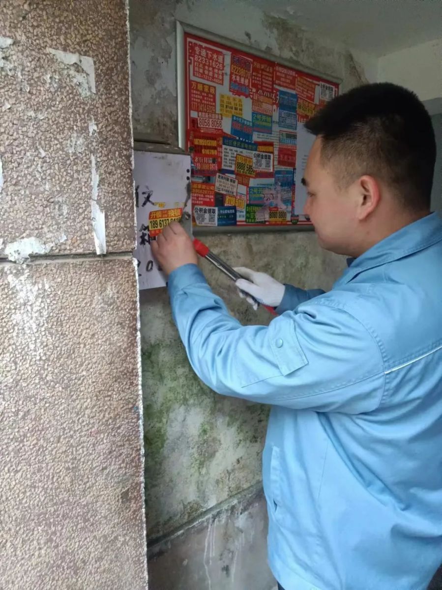 生活中,隨處可見的小廣告成為社區(qū)的“牛皮蘚”,很大程度上影響了社區(qū)的美觀。而氣化中心的青年職工們,化身“墻面清理大師”,前往堿廠生活區(qū)的路口、樓道清理一處處小廣告。他們心靈手巧、嚴(yán)謹(jǐn)細(xì)致,不放過每一個(gè)角落。青年員工們拿起鏟子,親手揭下一處處廣告條,收獲滿滿成就感的同時(shí),也為堿廠生活區(qū)和居民們帶來了整潔清爽的生活氛圍。