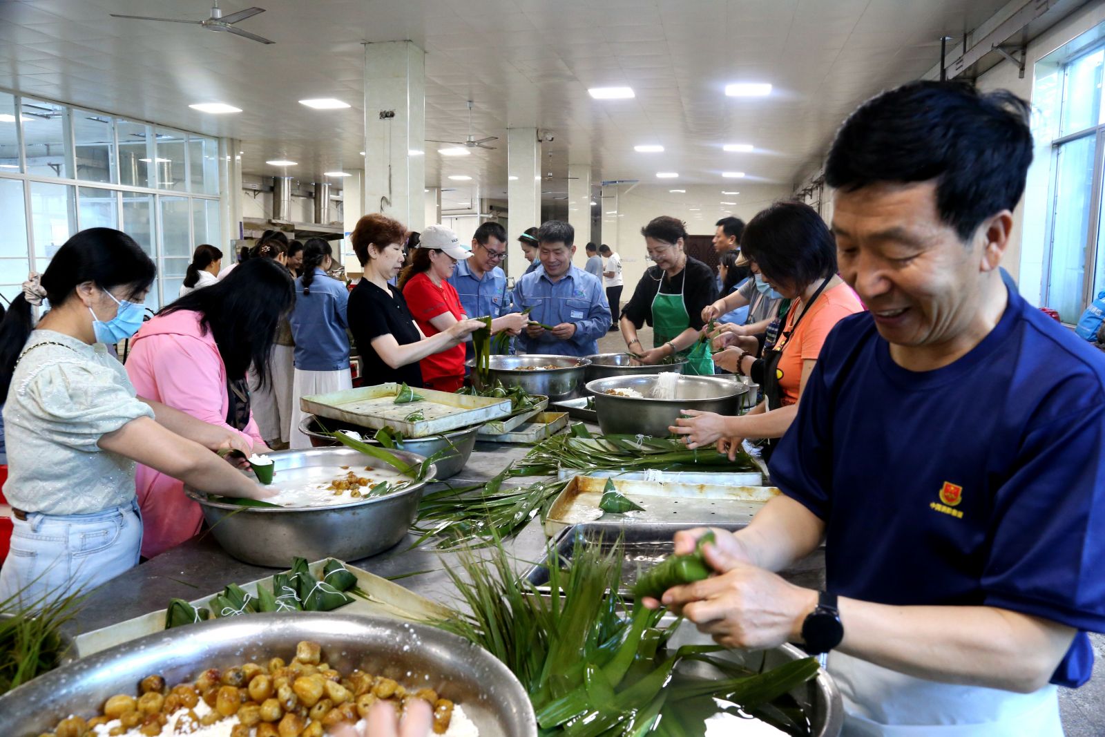 為保證活動(dòng)順利開(kāi)展,公司物管中心提前做好食材的采購(gòu),并對(duì)上萬(wàn)余片棕葉進(jìn)行煮熟晾干,300斤糯米進(jìn)行浸泡,100余斤蜜棗進(jìn)行清洗晾干。同時(shí),為了保證所有就餐職工每人兩個(gè)粽子的供應(yīng)量,堿業(yè)公司工會(huì)邀請(qǐng)23名內(nèi)退職工參與活動(dòng)。